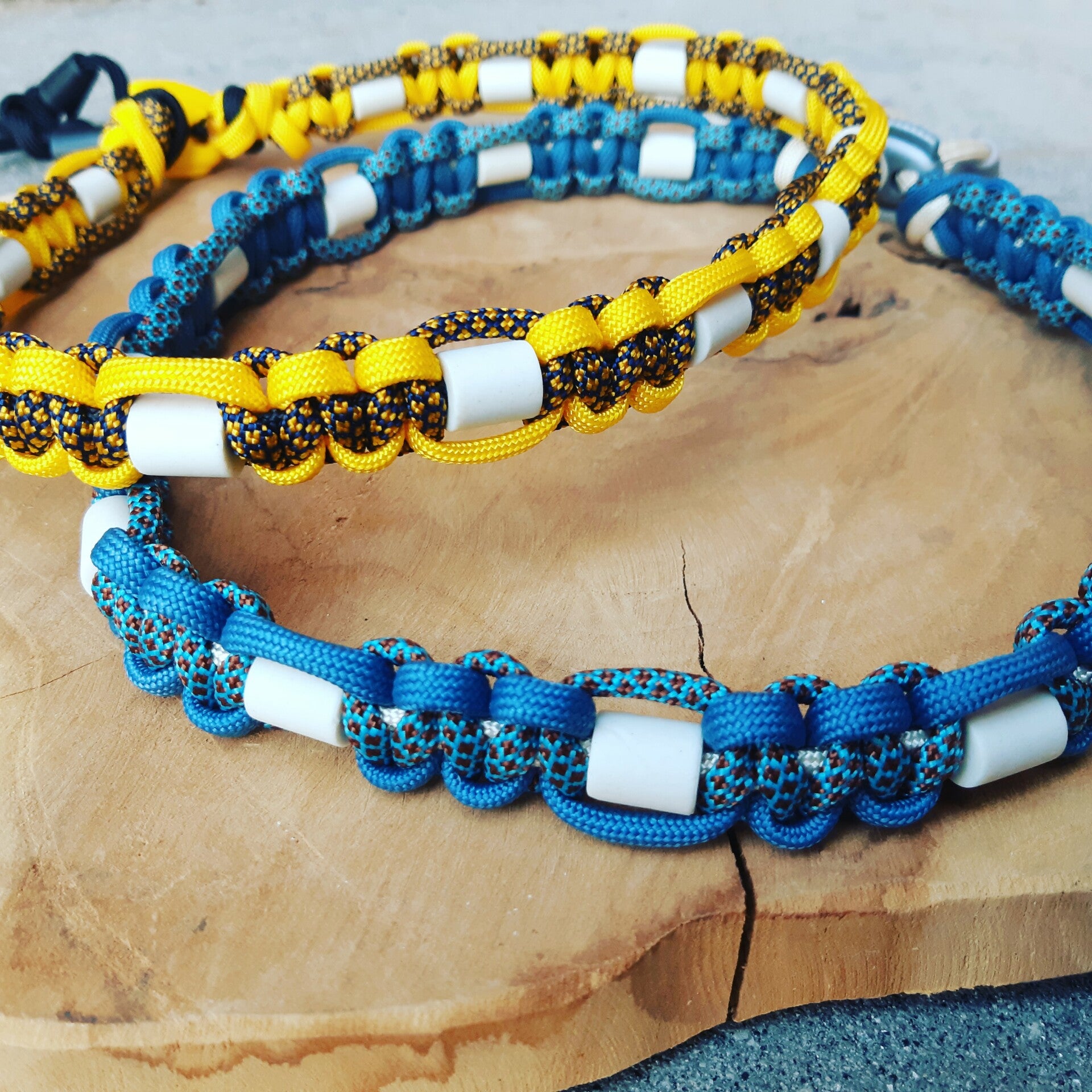 Mijn 100% natuurlijke anti-tekenbanden worden gemaakt van authentieke EM-X keramiek en beschermt de hond of kat door de werking van micro organismen in het EMX – keramiek. De bandjes bevatten geen chemicaliën en zorgen voor een hogere weerstand waardoor de hond of kat minder aantrekkelijk wordt voor teken, verder valt het mensen op dat ook vlooien wegblijven. De kralen zijn natuurlijk en veilig en ook geschikt voor honden met allergieën en voor pups. Geen druppels, tabletten of chemische banden waarbij toch een hoeveelheid gif in het bloed van de hond terecht komt, maar een leuke geknoopte band met 100% veilige kralen. Ze hebben een jarenlange werking je hoeft niet elk jaar een nieuwe te kopen. De invloed van de keramiek kralen is voor elk individu verschillend. De halsbanden geven geen 100% garantie tegen teken of vlooien net zo min dat chemische middelen deze garantie geven. Ervaring leert dat honden met een keramische tekenband, beter beschermt zijn dan honden zonder tegen zowel teken als vlooien.