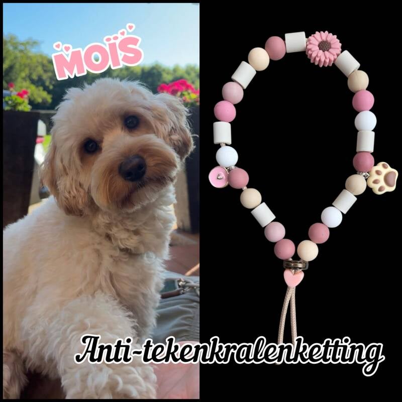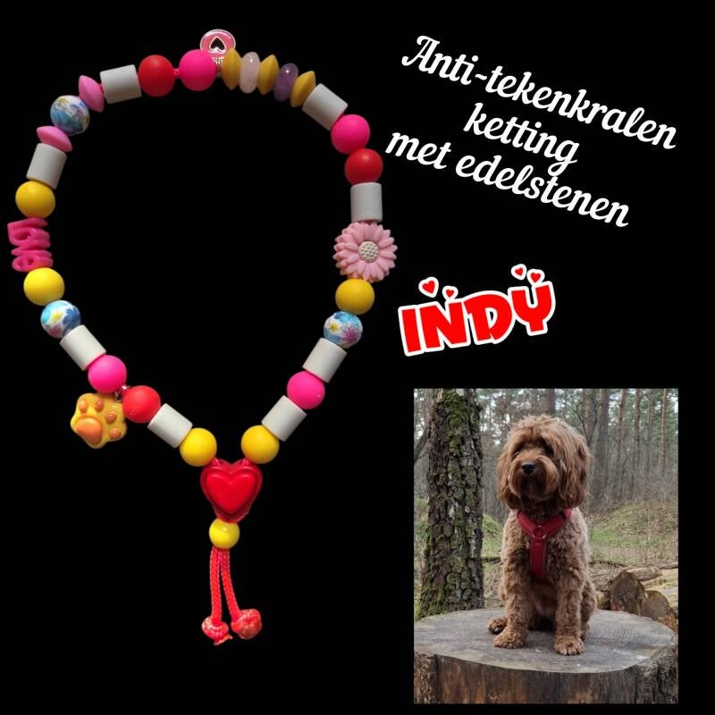 Mijn nieuwste collectie anti-tekenketting. Een echt mooi sieraad voor je huisdier. Uiteraard ook verkrijgbaar zonde de EMX-kralen gewoon leuk als halsketting of als id-ketting met bijpassende gepersonaliseerde penning.