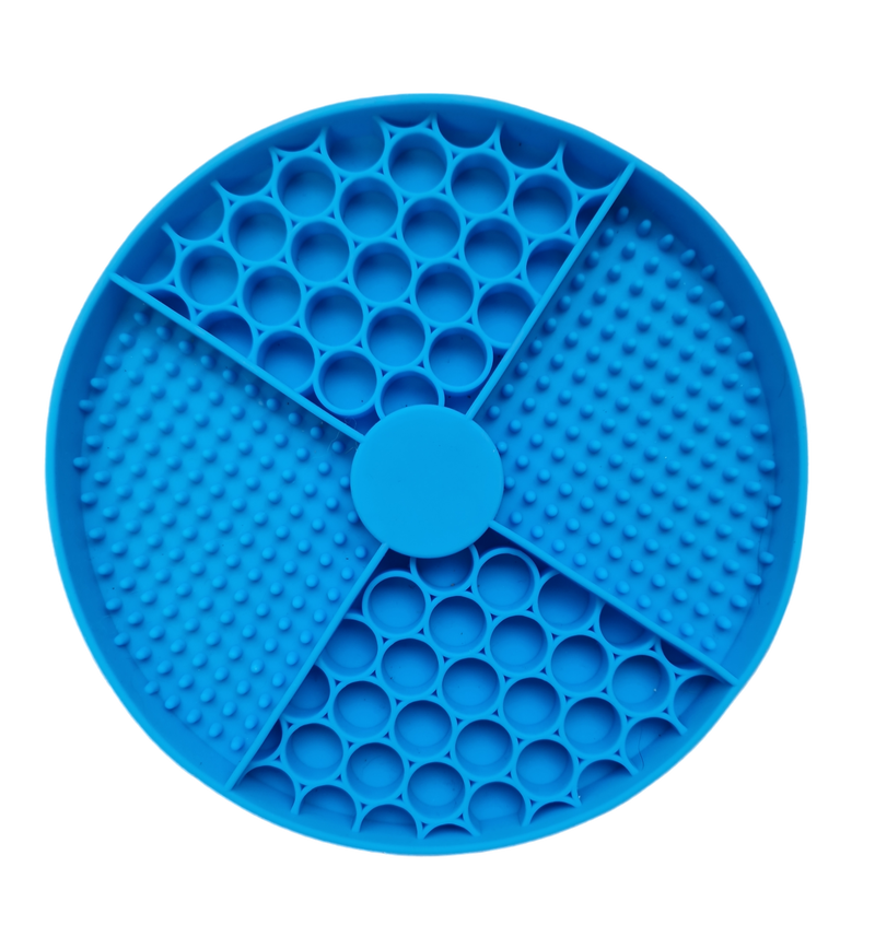 Deze mandala etray combineert de voordelen van een lickmat en een antischrokbak. De mandala zorgt ervoor dat je hond langzamer eet en zijn eten beter verteert. Ook zeer geschikt voor honden met een korte snuit.