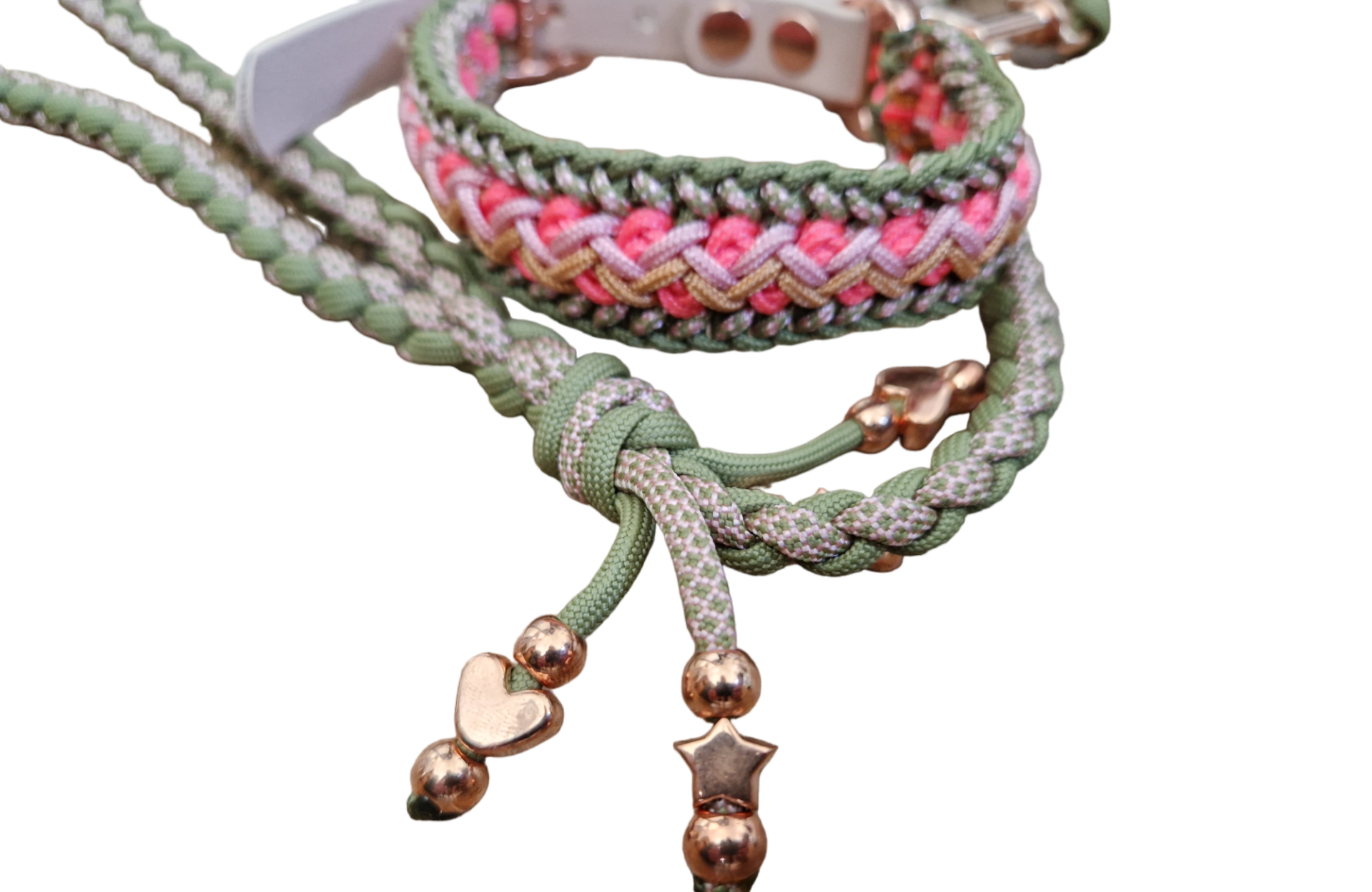 Wilt u een halsband / lijn combinatie neem dan even contact met mij op via het contactformulier, aan de hand van de halsomtrek en uw wensen krijgt u een prijsopgaaf. De prijzen van een halsband met lijn variëren tussen de 50 - 67,50 euro