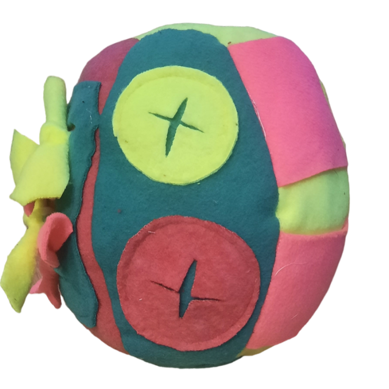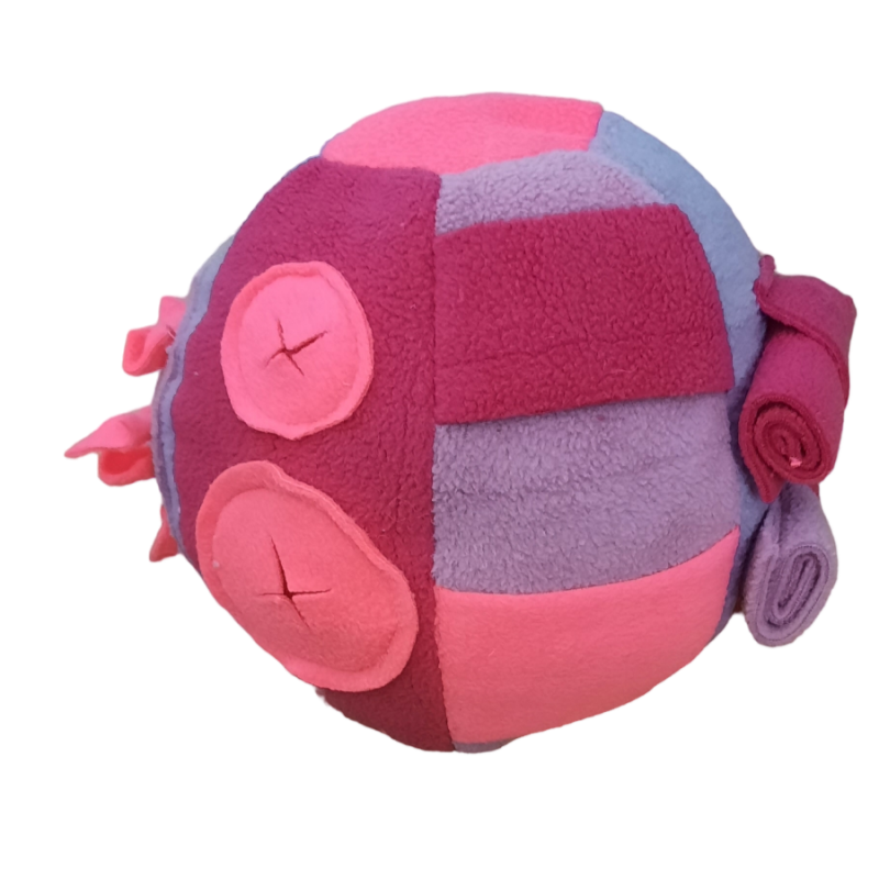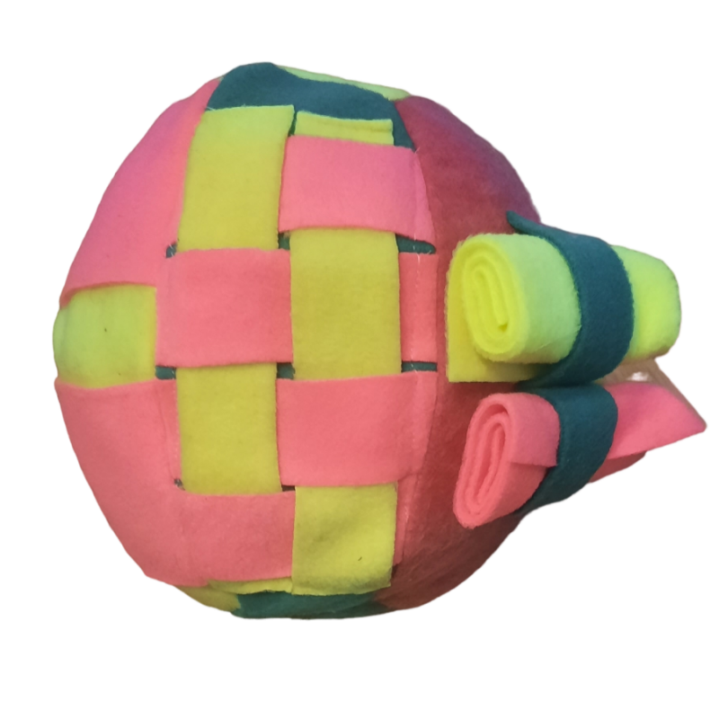 De puzzelbal een leuke uitdagende bezigheid voor je hond verstop er de maaltijdbrokjes of snacks in en lekker snuffelen maar. Doordat de bal niet blijft liggen zeer geschikt voor de slimme honden. De puzzelbal heeft een doorsnede van ongeveer 25 cm en is gevuld van zacht materiaal. Hij is in alle gewenst kleurencombinaties leverbaar en kost 28,50