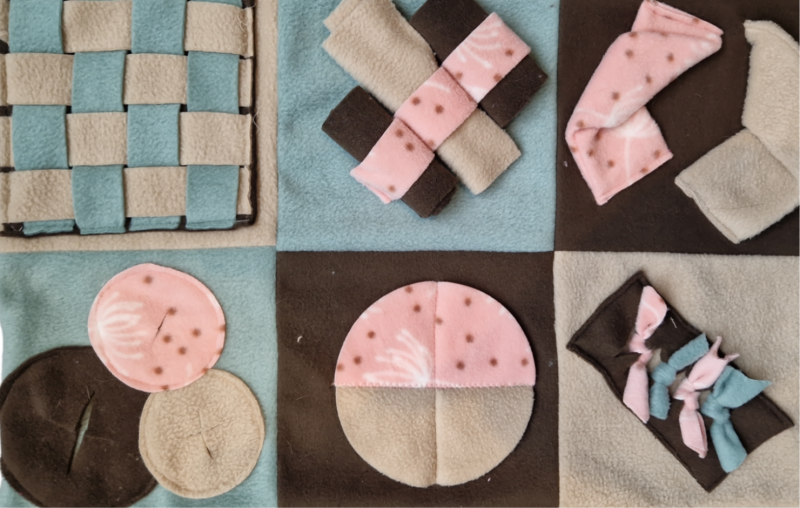 De snuffel- en puzzelmat is helemaal naar eigen kleurencombinaties samen te stellen
