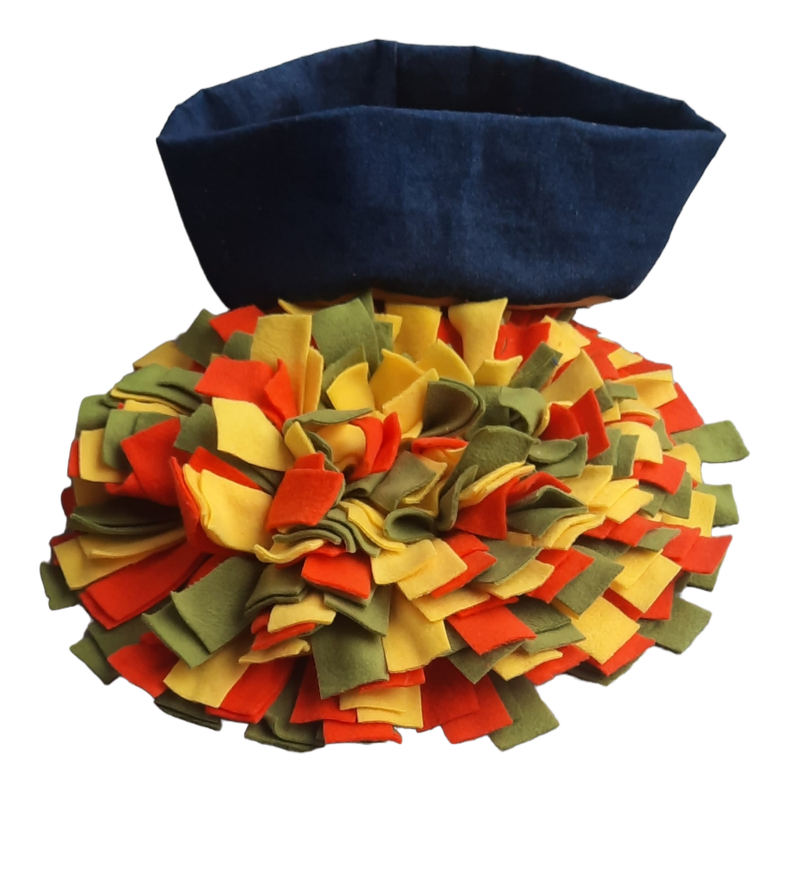 De snuffeltaart te gebruiken in 2 verschillende niveau's. Niveau 1 leg de snuffelmat zonder mandje op de grond en laat je hond zijn snoepjes of evt. de brokjes van de maaltijd zoeken. Niveau 2 stop de snuffelmat in het mandje zo is het moeilijker voor je hond om het lekkers te vinden. Zowel de mat als het mandje zijn uitwasbaar op 30 graden. Ze kosten 28.95