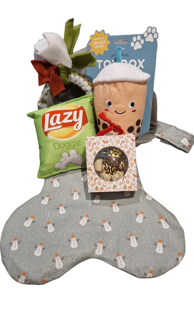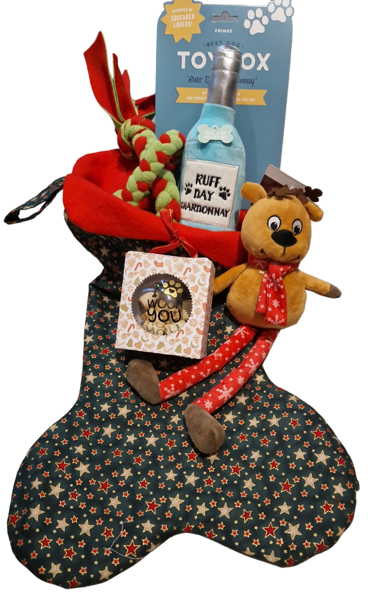 Een super leuke gevulde kerstzak in de vorm van een hondenbot om op te hangen t.w.v. 55,75 voor 39,95 euro